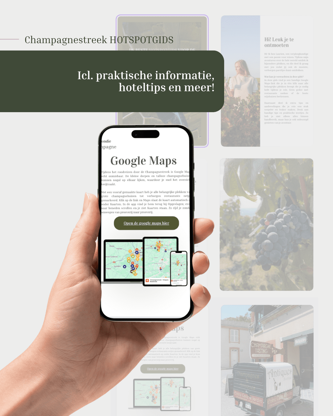 Kortom: de Ultieme Champagne hotspotgids biedt alles wat je nodig hebt om de Champagnestreek op je eigen tempo te ontdekken. Direct beschikbaar na aankoop, altijd bij de hand, en perfect om het meeste uit je reis te halen.